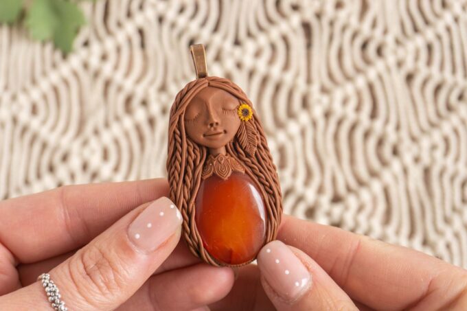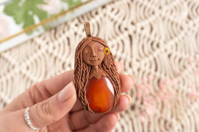 Čarobnica je izdelana iz polimerne gline. Vsak kos je unikaten in na voljo samo en kos. Izdelek lahko minimalno odstopa v barvnih niansah in detajlih, vendar se trudim, da bo vaš izdelek v naravi identičen opisu in fotografiji.