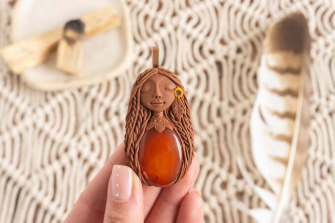 Vsaka Čarobnica je poimenovana po boginjah iz različnih obdobij, kultur in tradicij z vseh koncev sveta. Med izdelavo za vsako Čarobnico posebej povlečem orakelsko karto, ki nosi posebno sporočilo. Z vsako Čarobnico dobite torej še sporočilo, ki ga odkrijete šele, ko odprete paketek.
