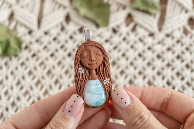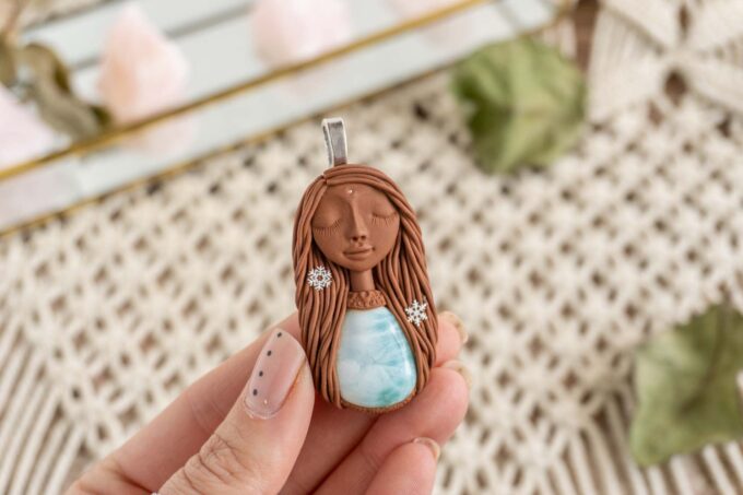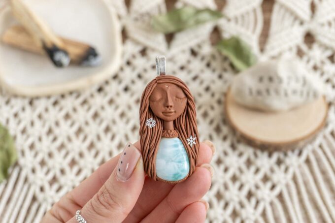 Čarobnica je izdelana iz polimerne gline. Vsak kos je unikaten in na voljo samo en kos. Izdelek lahko minimalno odstopa v barvnih niansah in detajlih, vendar se trudim, da bo vaš izdelek v naravi identičen opisu in fotografiji.