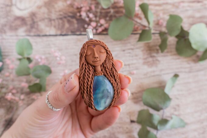 Čarobnica je izdelana iz polimerne gline. Vsak kos je unikaten in na voljo samo en kos. Izdelek lahko minimalno odstopa v barvnih niansah in detajlih, vendar se trudim, da bo vaš izdelek v naravi identičen opisu in fotografiji.