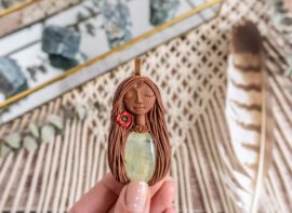 Vsaka Čarobnica je poimenovana po boginjah iz različnih obdobij, kultur in tradicij z vseh koncev sveta. Med izdelavo za vsako Čarobnico posebej povlečem orakelsko karto, ki nosi posebno sporočilo. Z vsako Čarobnico dobite torej še sporočilo, ki ga odkrijete šele, ko odprete paketek.