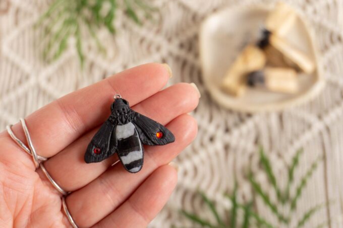 Svetlobnica je izdelana iz polimerne gline. Vsak kos je unikaten in na voljo samo en kos. Izdelek lahko minimalno odstopa v barvnih niansah in detajlih, vendar se trudim, da bo vaš izdelek v naravi identičen opisu in fotografiji.