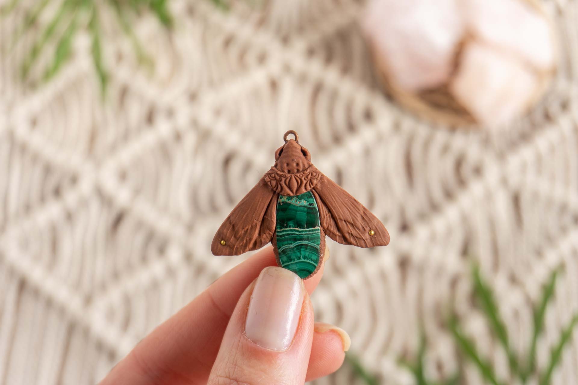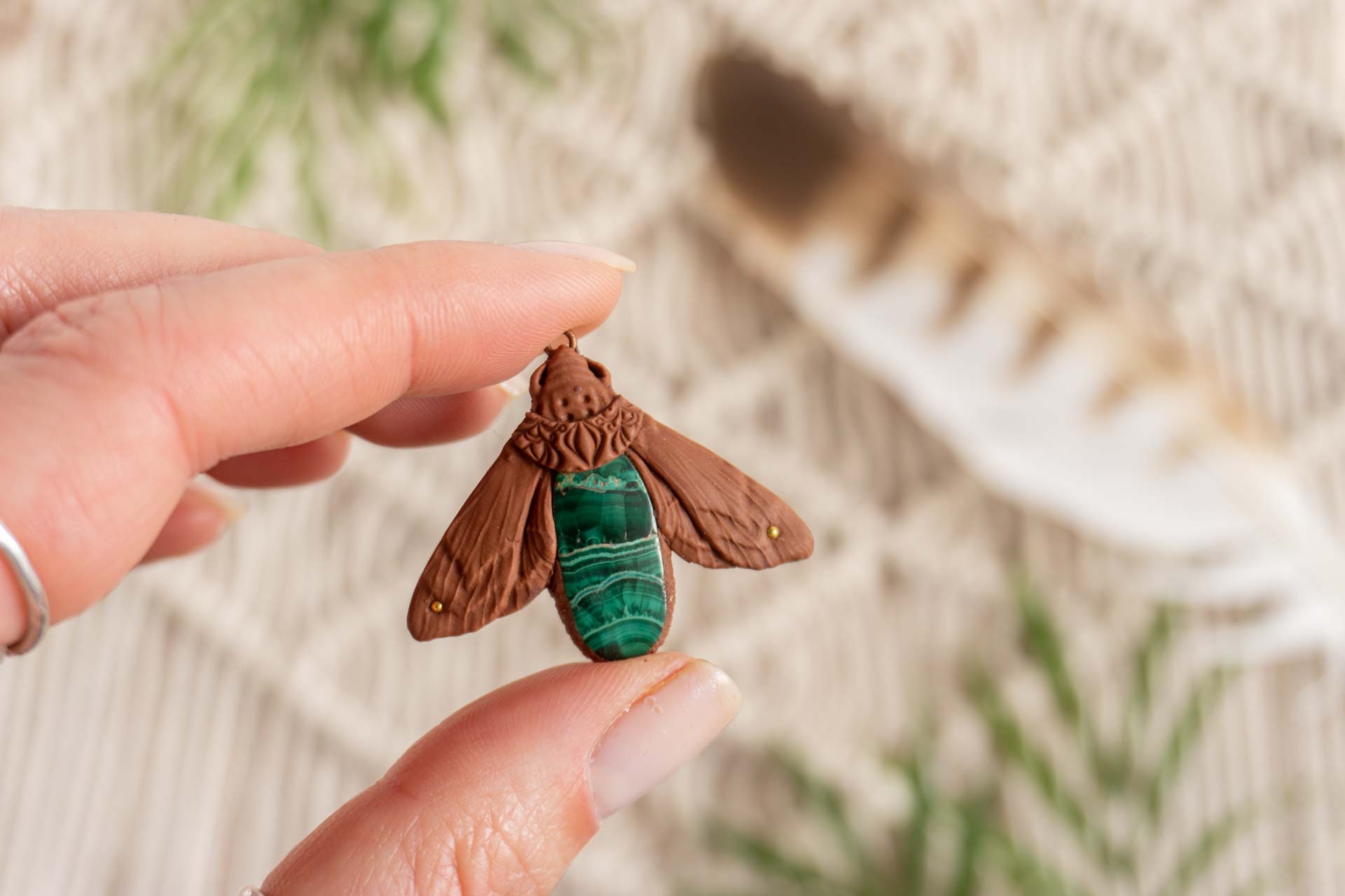 Svetlobnica je izdelana iz polimerne gline. Vsak kos je unikaten in na voljo samo en kos. Izdelek lahko minimalno odstopa v barvnih niansah in detajlih, vendar se trudim, da bo vaš izdelek v naravi identičen opisu in fotografiji.