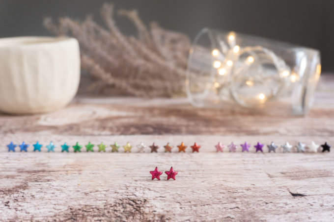 Izbirate lahko med 25 pisanimi barvnimi različicami. Velikost uhančkov je 7mm. Osnova je iz nerjavečega jekla, ki je kakovostna in ne povzroča alergij. Uhančki imajo kovinski in silikonski zatič.