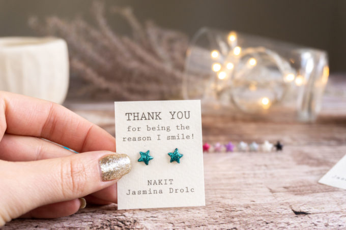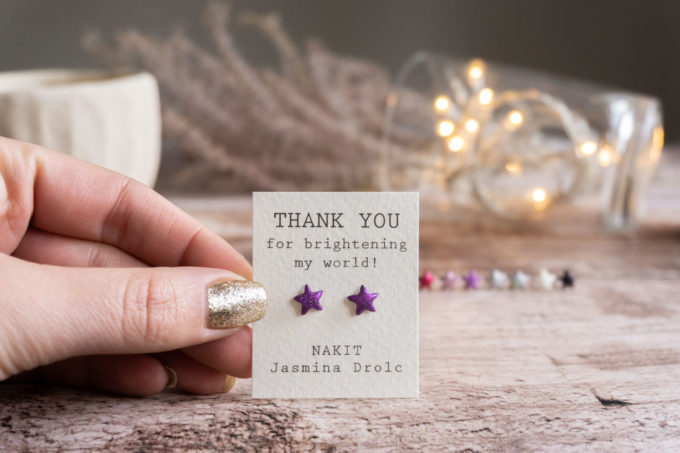 Ob nakupu kompleta (5ih parov) vam priložim male rjave vrečkice ter nalepke z napisom “Thank you”, da lahko uhančke sami zapakirate in podarite ljubljeni osebi.