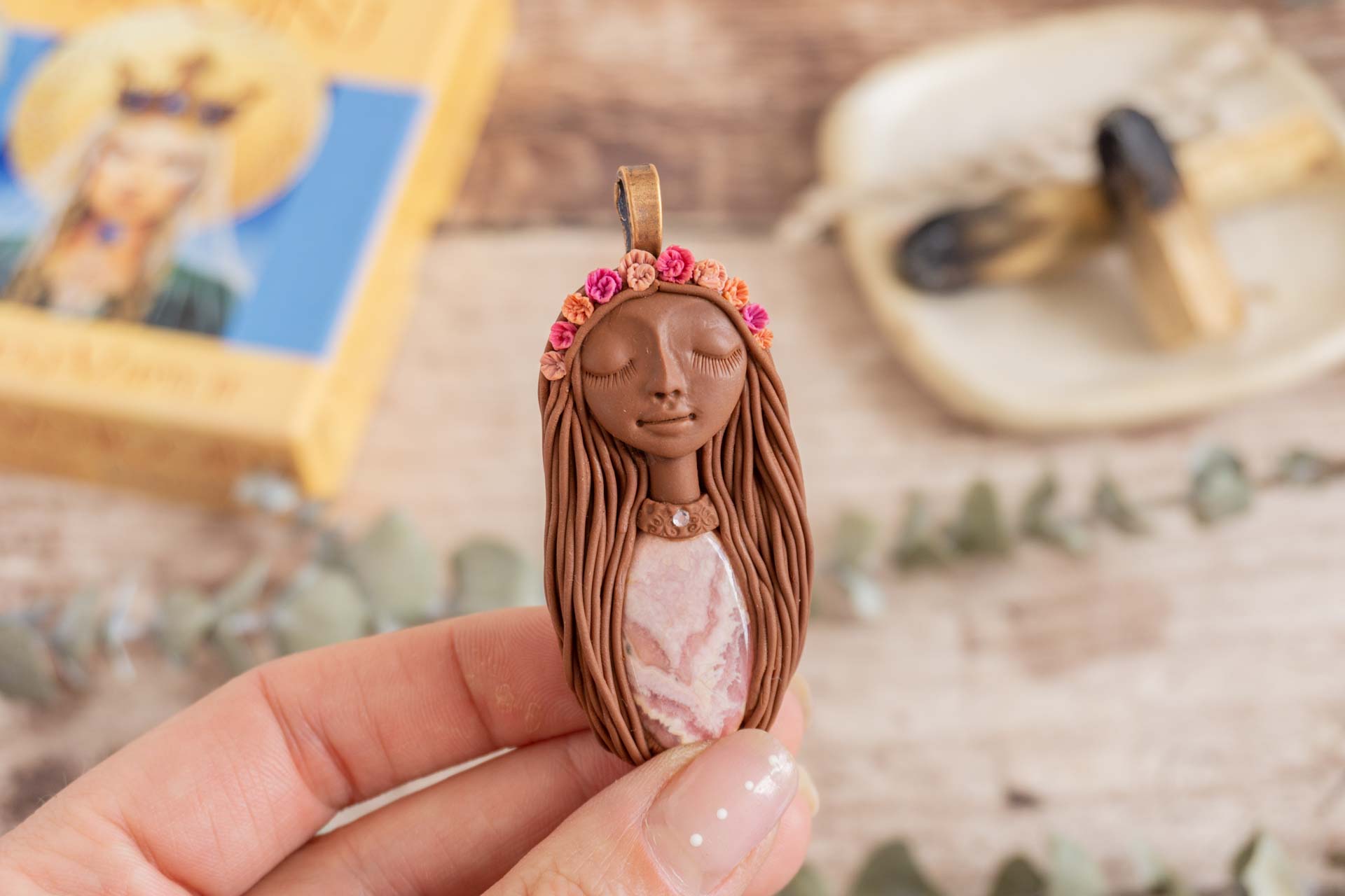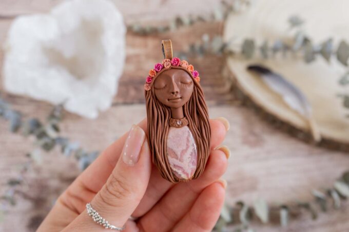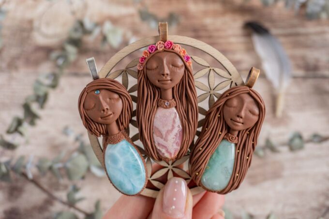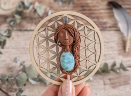 Vsaka Čarobnica je poimenovana po boginjah iz različnih obdobij, kultur in tradicij z vseh koncev sveta. Med izdelavo za vsako Čarobnico posebej povlečem orakelsko karto, ki nosi posebno sporočilo. Z vsako Čarobnico dobite torej še sporočilo, ki ga odkrijete šele, ko odprete paketek.