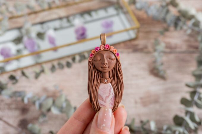 Čarobnica je izdelana iz polimerne gline. Vsak kos je unikaten in na voljo samo en kos. Izdelek lahko minimalno odstopa v barvnih niansah in detajlih, vendar se trudim, da bo vaš izdelek v naravi identičen opisu in fotografiji.