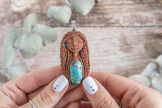 Čarobnica je izdelana iz polimerne gline. Vsak kos je unikaten in na voljo samo en kos. Izdelek lahko minimalno odstopa v barvnih niansah in detajlih, vendar se trudim, da bo vaš izdelek v naravi identičen opisu in fotografiji.