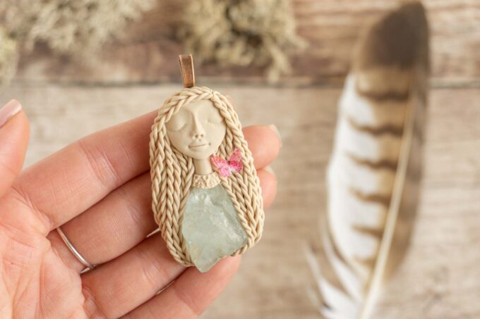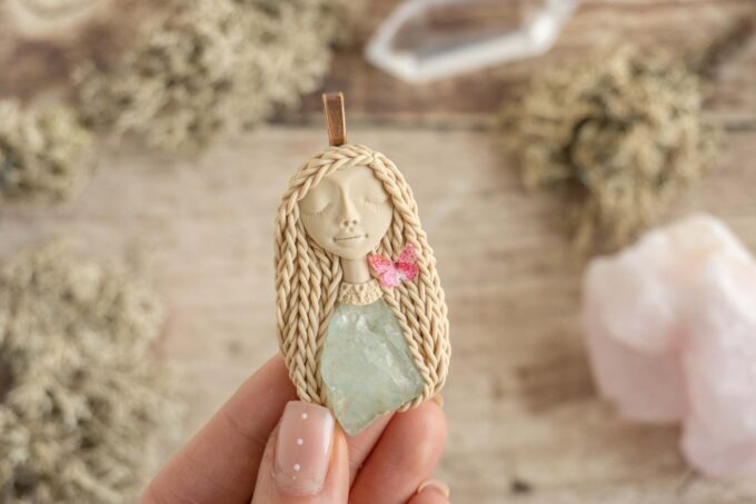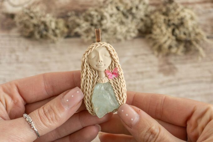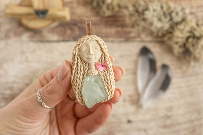 Čarobnica je izdelana iz polimerne gline. Vsak kos je unikaten in na voljo samo en kos. Izdelek lahko minimalno odstopa v barvnih niansah in detajlih, vendar se trudim, da bo vaš izdelek v naravi identičen opisu in fotografiji.