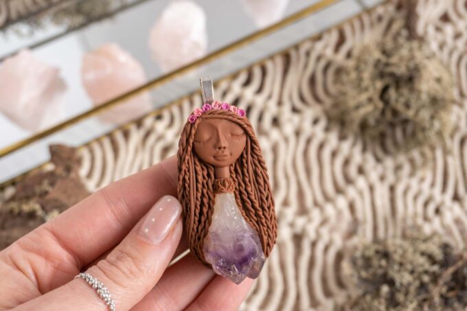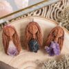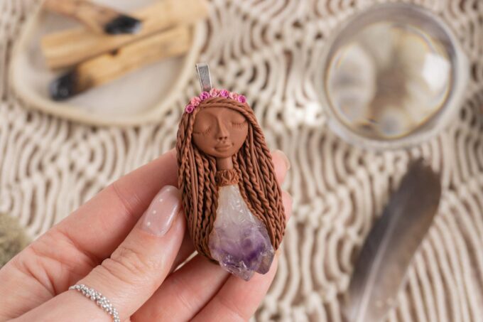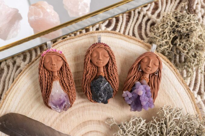 Vsaka Čarobnica je poimenovana po boginjah iz različnih obdobij, kultur in tradicij z vseh koncev sveta. Med izdelavo za vsako Čarobnico posebej povlečem orakelsko karto, ki nosi posebno sporočilo. Z vsako Čarobnico dobite torej še sporočilo, ki ga odkrijete šele, ko odprete paketek.