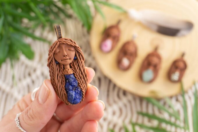 Vsaka Čarobnica je poimenovana po boginjah iz različnih obdobij, kultur in tradicij z vseh koncev sveta. Med izdelavo za vsako Čarobnico posebej povlečem orakelsko karto, ki nosi posebno sporočilo. Z vsako Čarobnico dobite torej še sporočilo, ki ga odkrijete šele, ko odprete paketek.