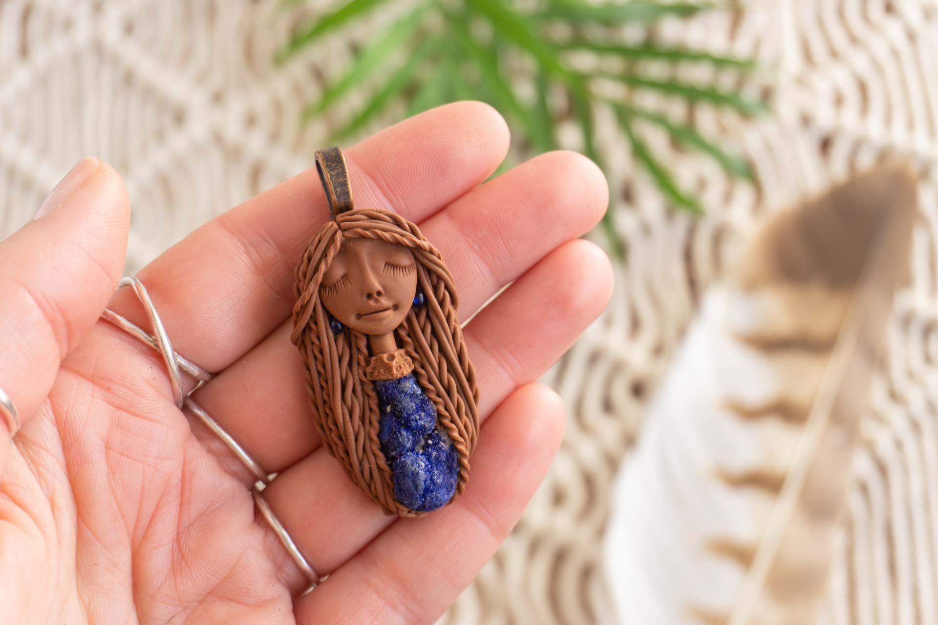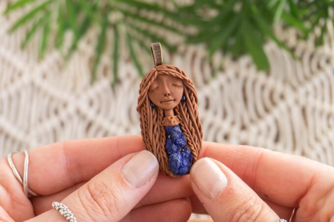 Čarobnica je izdelana iz polimerne gline. Vsak kos je unikaten in na voljo samo en kos. Izdelek lahko minimalno odstopa v barvnih niansah in detajlih, vendar se trudim, da bo vaš izdelek v naravi identičen opisu in fotografiji.