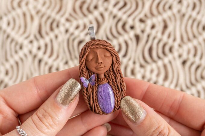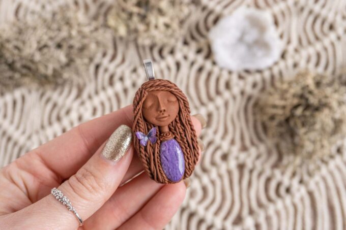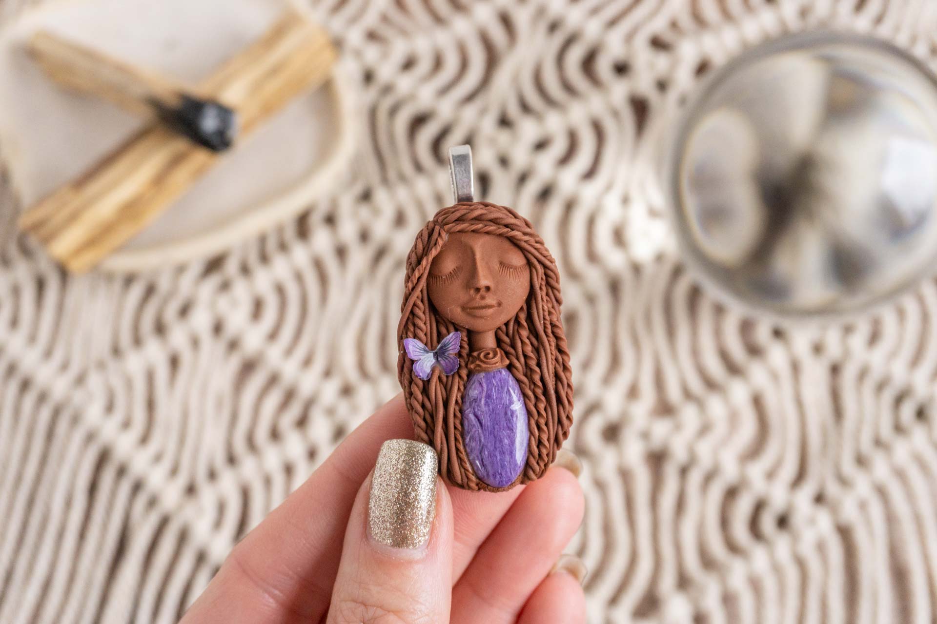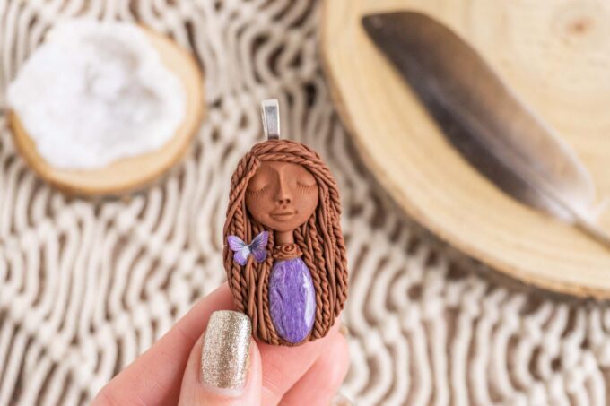 Čarobnica je izdelana iz polimerne gline. Vsak kos je unikaten in na voljo samo en kos. Izdelek lahko minimalno odstopa v barvnih niansah in detajlih, vendar se trudim, da bo vaš izdelek v naravi identičen opisu in fotografiji.