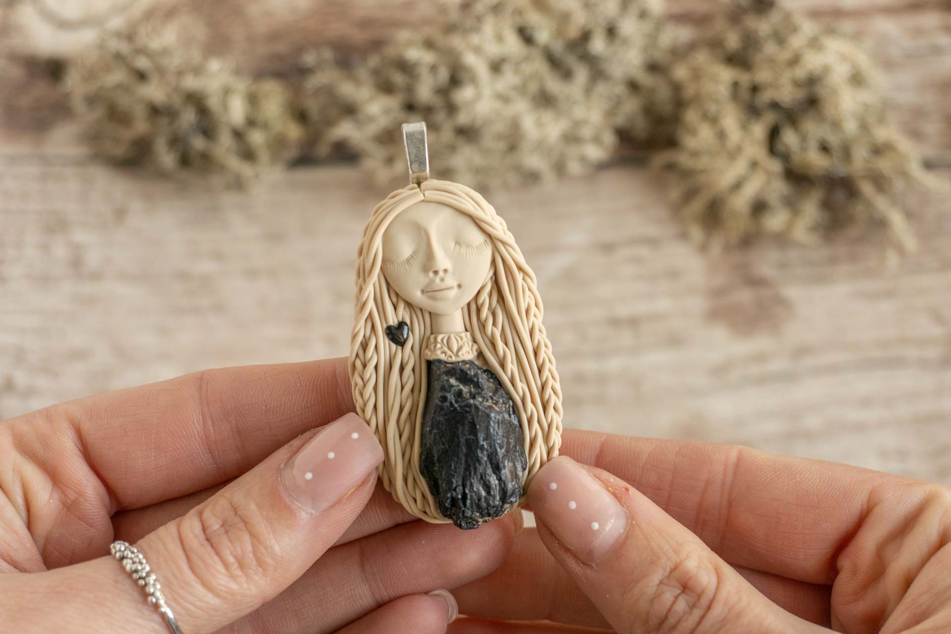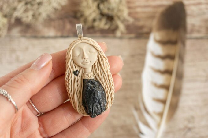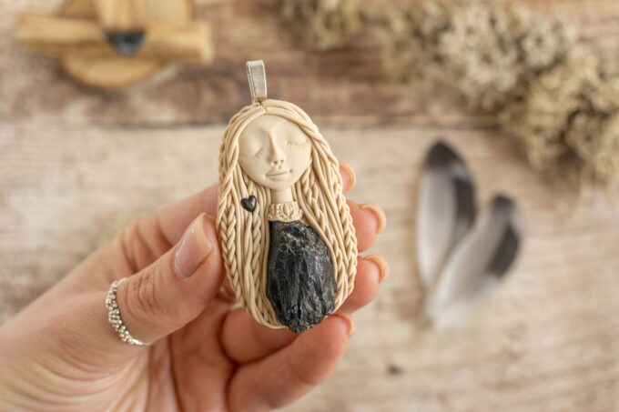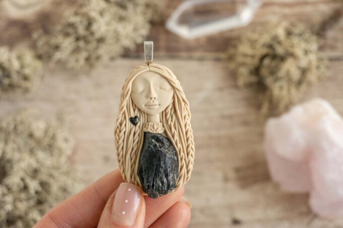 Čarobnica je izdelana iz polimerne gline. Vsak kos je unikaten in na voljo samo en kos. Izdelek lahko minimalno odstopa v barvnih niansah in detajlih, vendar se trudim, da bo vaš izdelek v naravi identičen opisu in fotografiji.