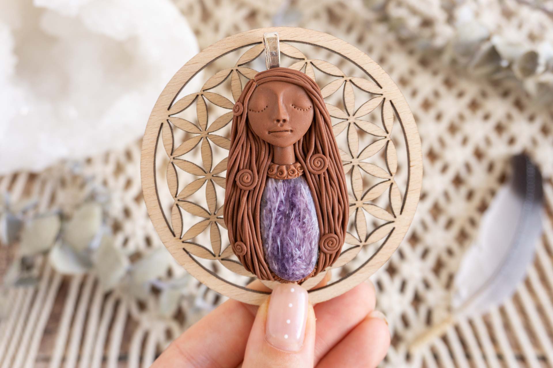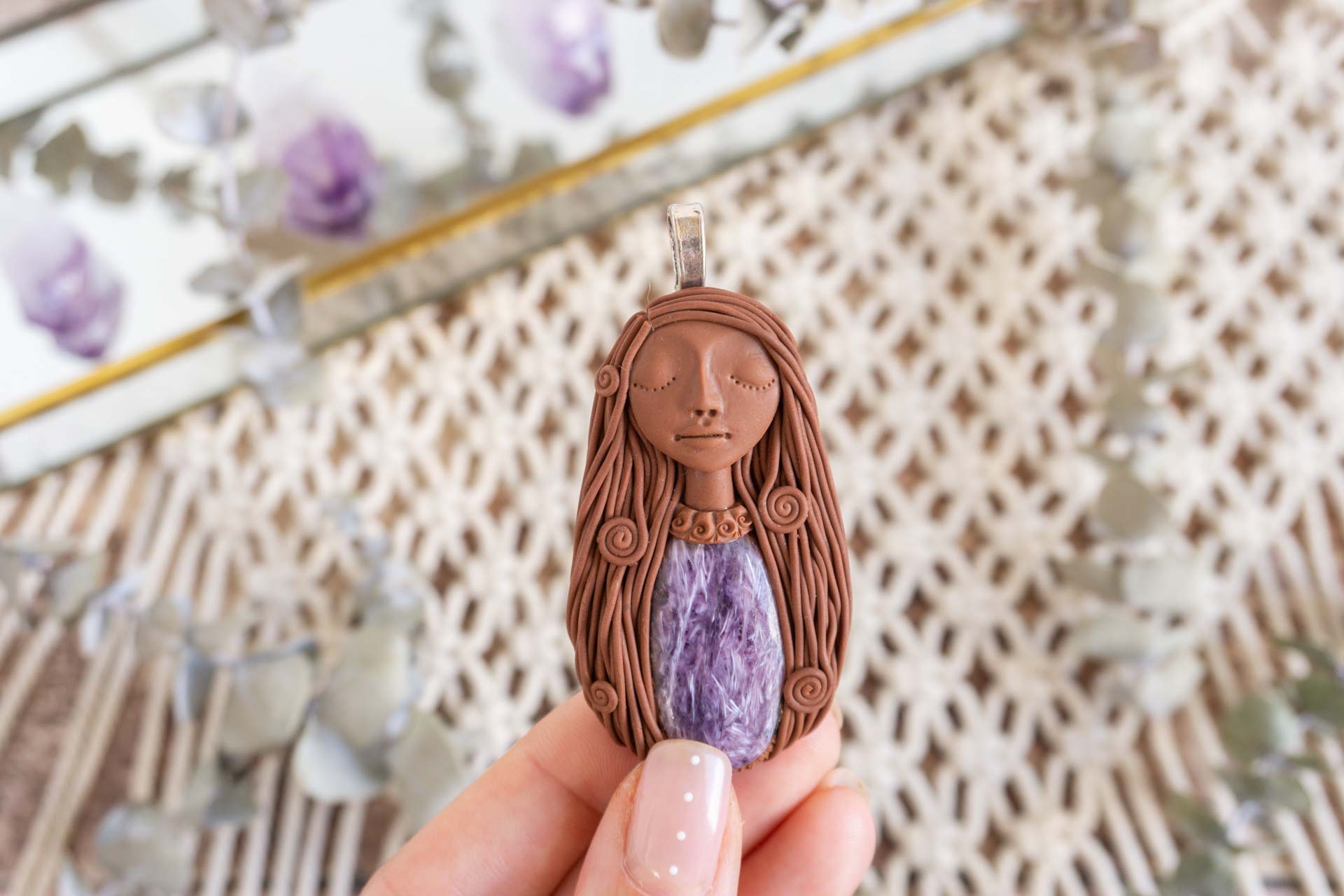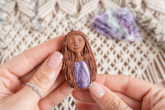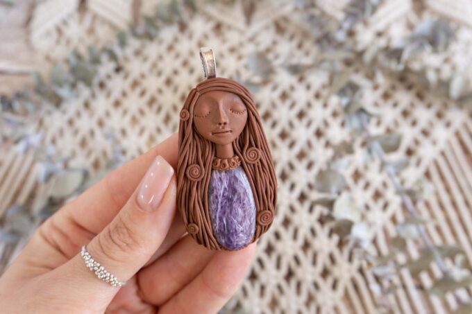 Čarobnica je izdelana iz polimerne gline. Vsak kos je unikaten in na voljo samo en kos. Izdelek lahko minimalno odstopa v barvnih niansah in detajlih, vendar se trudim, da bo vaš izdelek v naravi identičen opisu in fotografiji.