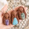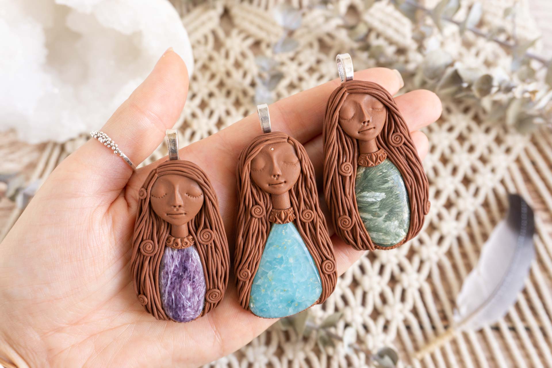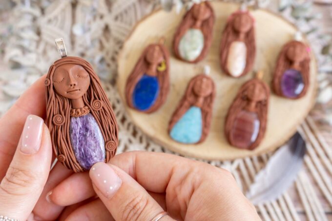 Vsaka Čarobnica je poimenovana po boginjah iz različnih obdobij, kultur in tradicij z vseh koncev sveta. Med izdelavo za vsako Čarobnico posebej povlečem orakelsko karto, ki nosi posebno sporočilo. Z vsako Čarobnico dobite torej še sporočilo, ki ga odkrijete šele, ko odprete paketek.
