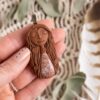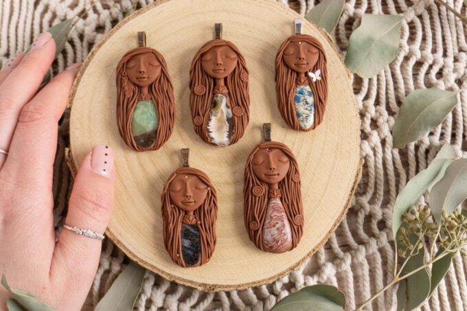 Vsaka Čarobnica je poimenovana po boginjah iz različnih obdobij, kultur in tradicij z vseh koncev sveta. Med izdelavo za vsako Čarobnico posebej povlečem orakelsko karto, ki nosi posebno sporočilo. Z vsako Čarobnico dobite torej še sporočilo, ki ga odkrijete šele, ko odprete paketek.