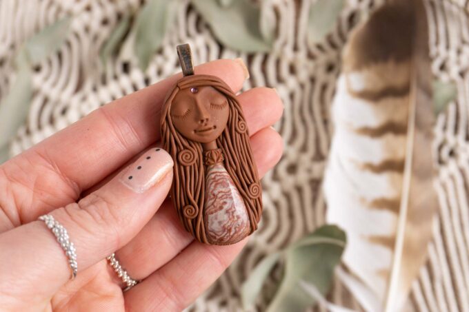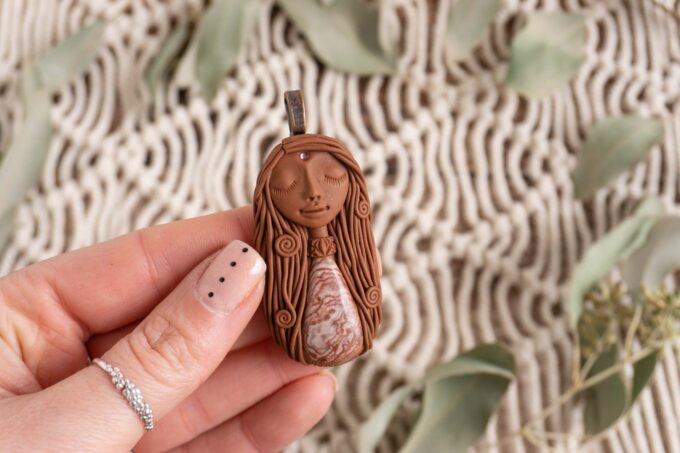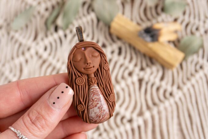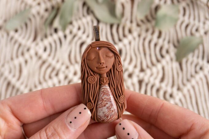 Čarobnica je izdelana iz polimerne gline. Vsak kos je unikaten in na voljo samo en kos. Izdelek lahko minimalno odstopa v barvnih niansah in detajlih, vendar se trudim, da bo vaš izdelek v naravi identičen opisu in fotografiji.