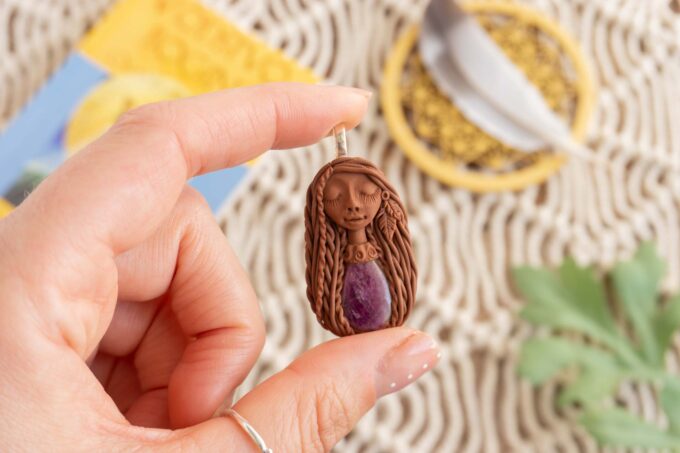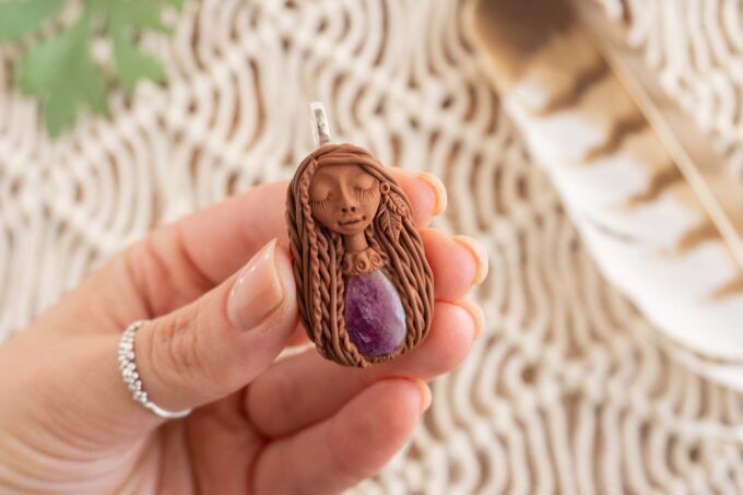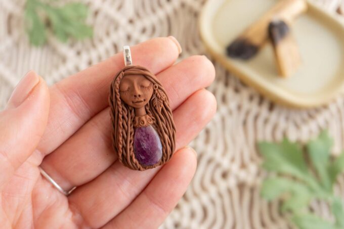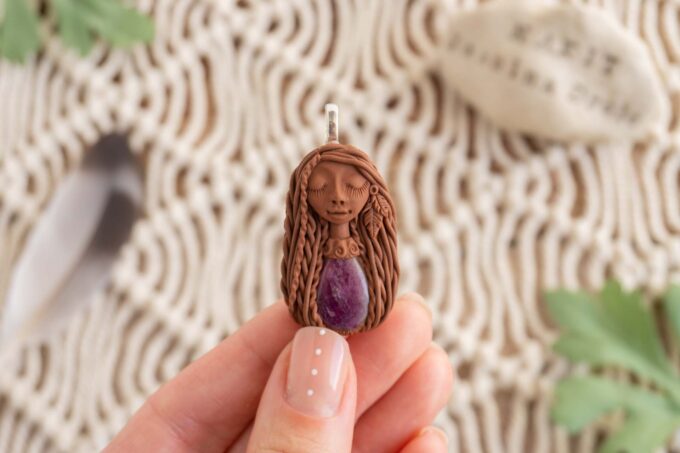 Čarobnica je izdelana iz polimerne gline. Vsak kos je unikaten in na voljo samo en kos. Izdelek lahko minimalno odstopa v barvnih niansah in detajlih, vendar se trudim, da bo vaš izdelek v naravi identičen opisu in fotografiji.