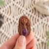 Vsaka Čarobnica je poimenovana po boginjah iz različnih obdobij, kultur in tradicij z vseh koncev sveta. Med izdelavo za vsako Čarobnico posebej povlečem orakelsko karto, ki nosi posebno sporočilo. Z vsako Čarobnico dobite torej še sporočilo, ki ga odkrijete šele, ko odprete paketek.